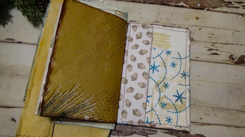 I did some stitching, and added pockets and tuck spots within it. It was a very easy and fun project. To see the whole folio check out the “Artsy Solutions” youtube channel where you will find a flip through of this October blog challenge.