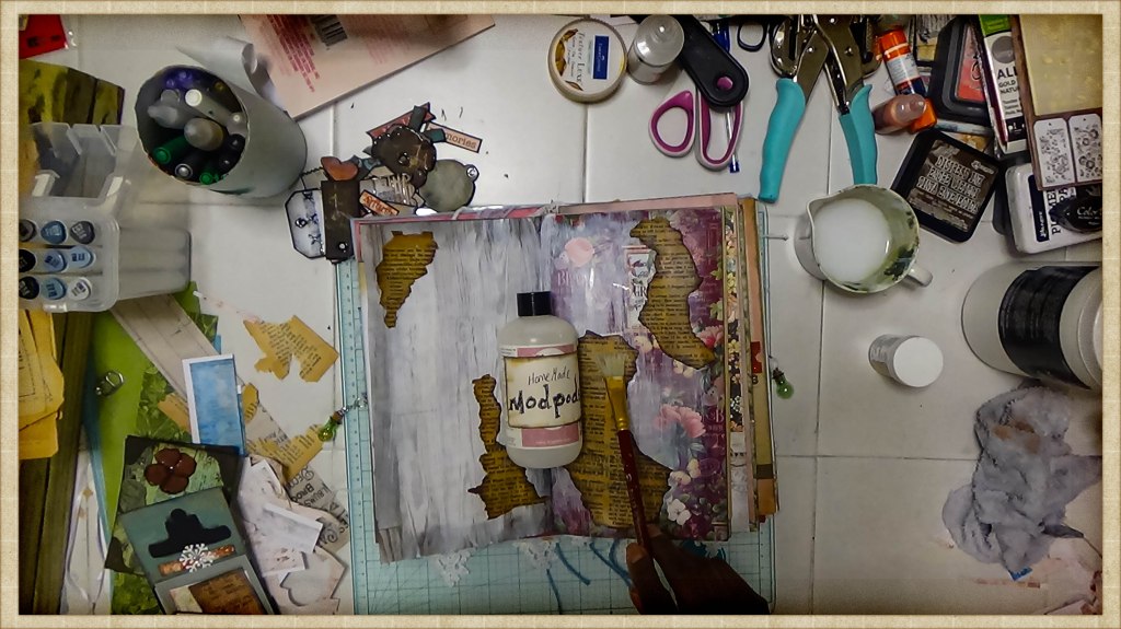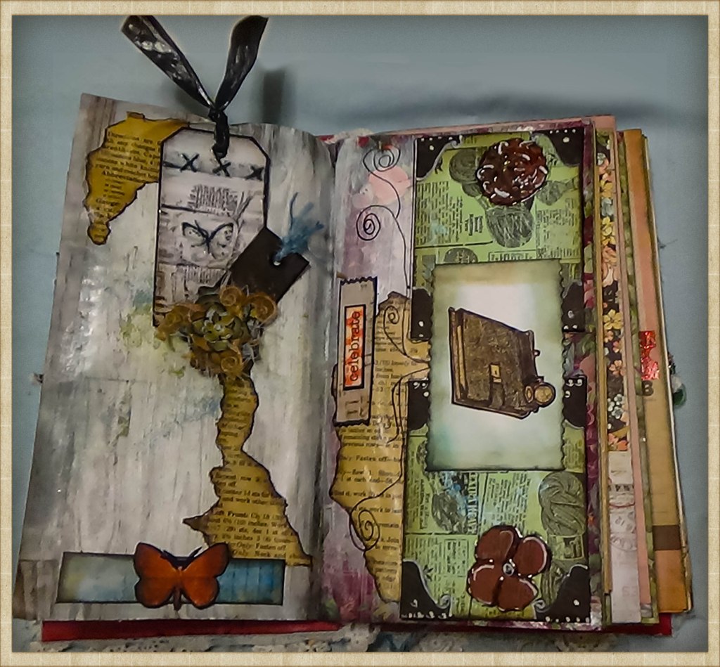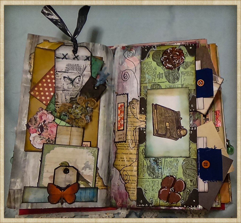 I have been working on a junk journal for a few weeks now and decided to add some of my digital printables to a couple of the pages. I used the latest Multimedia Crafts Digital Blog Freebie called, “Ads Envelope Template”, and the Multimedia Crafts Digital Facebook Freebie called, “Aged Stamps”.
