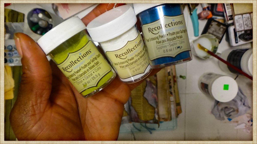 -Recollections Detail embossing powders- (snow, sapphire, citron)