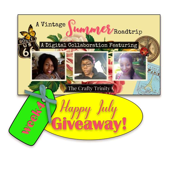 There will be a four week YouTube “Happy July Giveaway” with a summer, travel theme. Participants can enter to win the printable kit from the Multimedia Crafts Digital Esty shop called, “Vintage Summer Road Trip.” Winners will get the kit, some craft supplies, along with a project that is created each week on the YouTube channel: Sonya Stover.