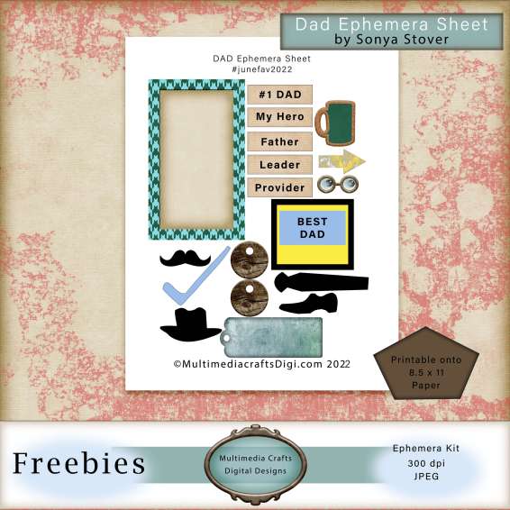 To spruce up your projects you can use some freebies to compliment your work. Here is this month’s Multimedia Crafts Digital freebie called, “Dad Ephemera Sheet.” To access it click here.
