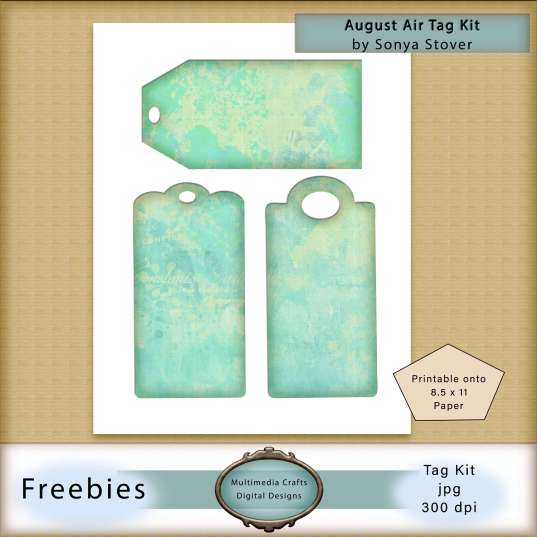 For my project I made some super easy tags using the Multimedia Crafts Digital freebie kit called, “August Air Tag Kit”. Print out these three tags and combine them with other mixed media pieces. To access the kit click here.