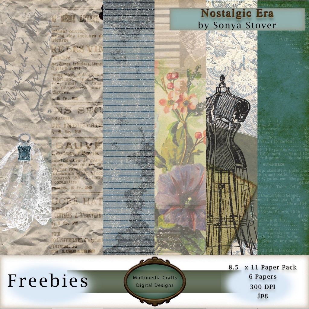 Get more freebies weekly! Please enjoy this latest six piece 8.5″ x 11″ paper kit. The papers have a “nostalgic era” feel to them. Bring the past back to life. Use this paper pack with journals, scrapbooks, collages, tags, mats, and multiple types of mixed media projects. Click to download.